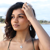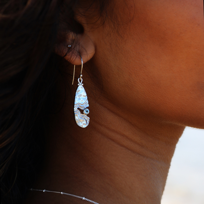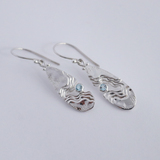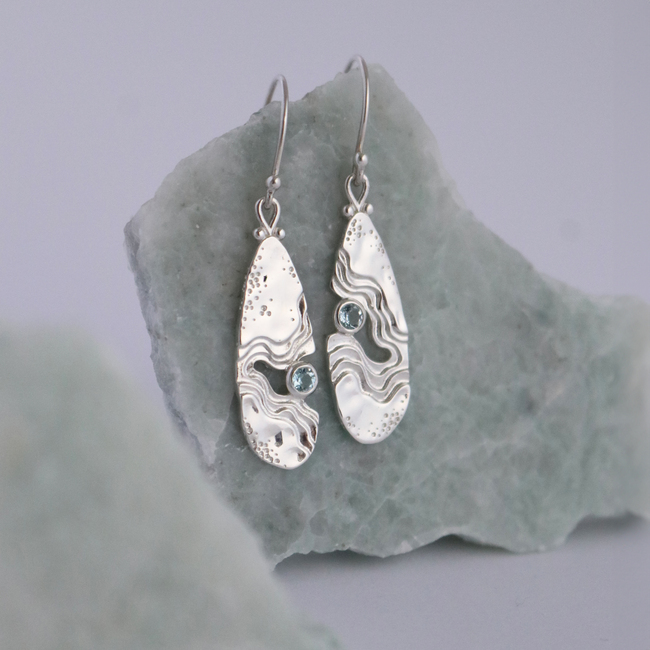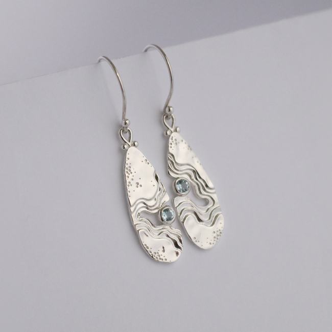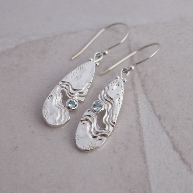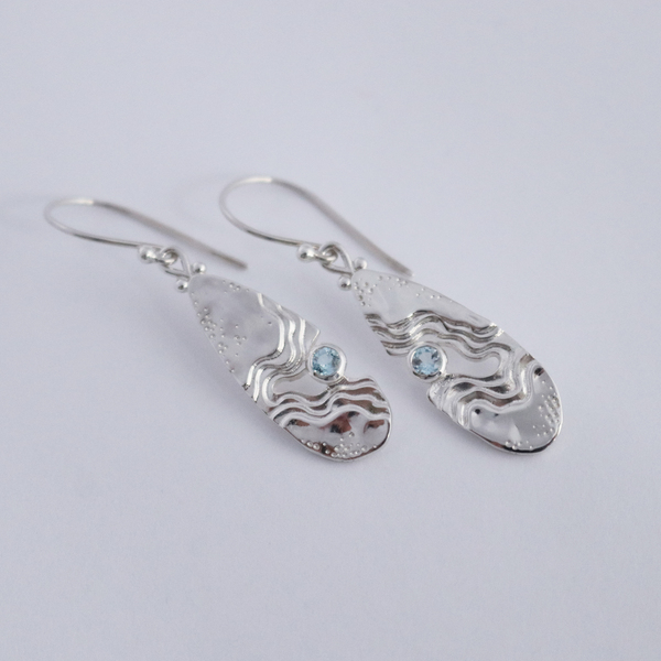 The Serenity Collection draws inspiration from the serene beauty of the ocean and its shores. Our Haven dangle earrings have been carefully crafted by Balinese silversmiths from environmentally friendly recycled 925 sterling silver. Each earring features a beautiful light blue Topaz gemstone, evoking the shimmering essence of water.
