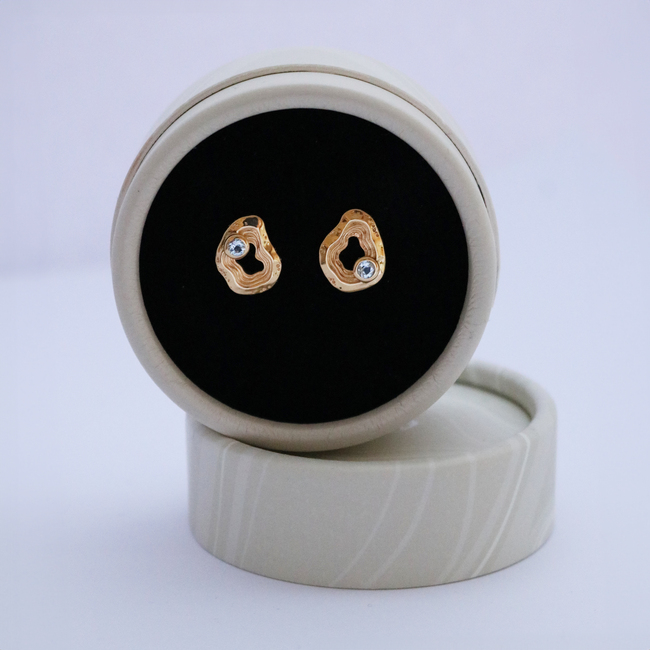 ...The Serenity Collection draws inspiration from the serene beauty of the ocean and its shores. Our Oasis ear studs have been carefully crafted by Balinese silversmiths from environmentally friendly recycled 925 sterling silver with 18K gold plating. Beautiful light blue Topaz gemstones aim to resemble the shimmering essence of water.