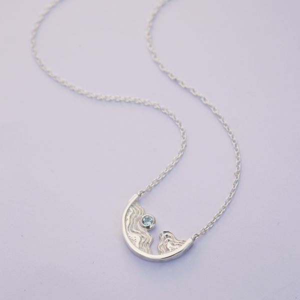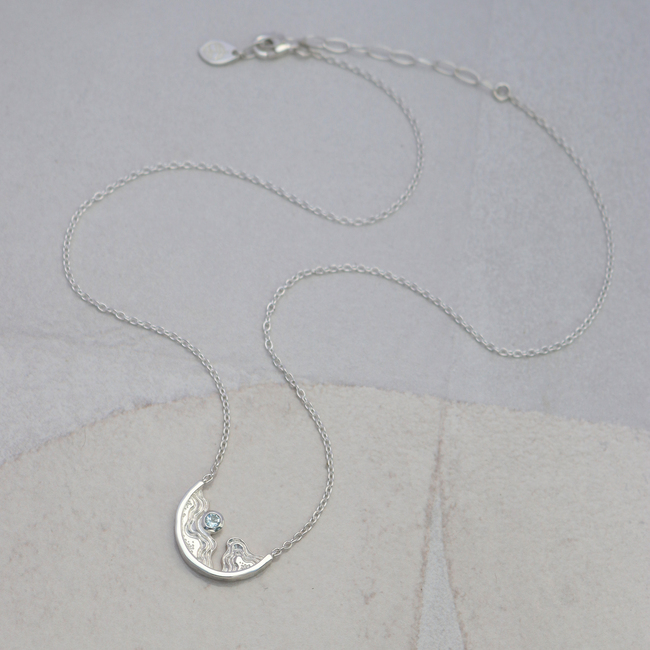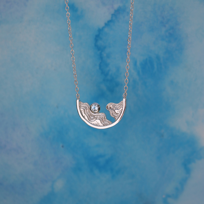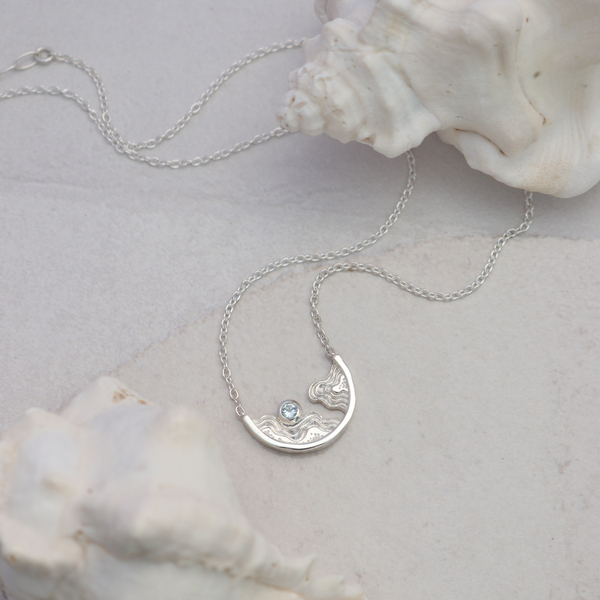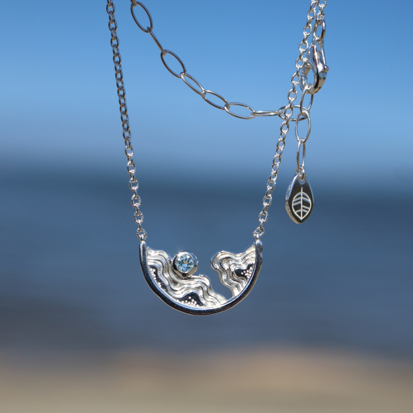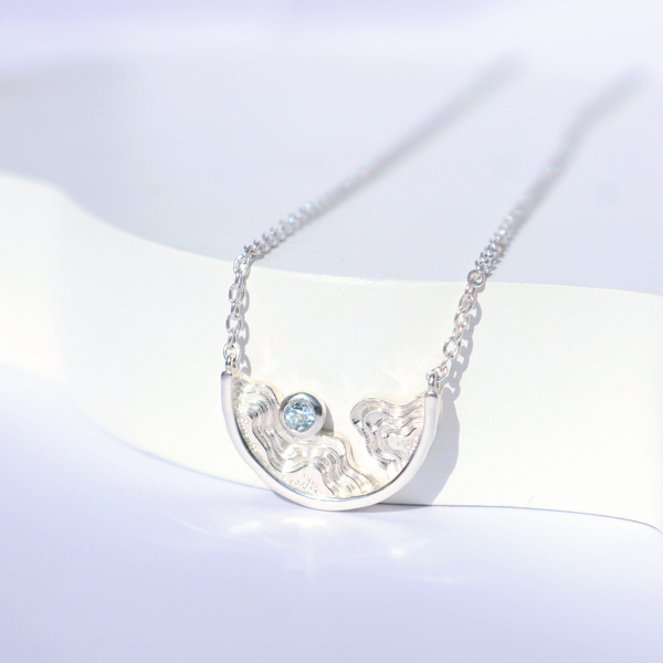 The Serenity Collection draws inspiration from the serene beauty of the ocean and its shores. Our Paradise necklace has been carefully crafted by Balinese silversmiths from environmentally friendly recycled 925 sterling silver. The design features a beautiful light blue Topaz gemstone, evoking the shimmering essence of water.