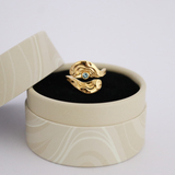 Our Serenity designs arrive packaged in a beautiful complementary round gift box with a dark velvet inlay, which is ideal for gifting or storing your jewellery.