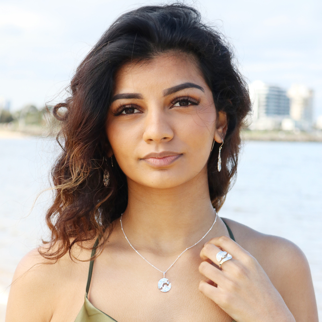 Our Serenity designs arrive packaged in a beautiful complementary round gift box with a dark velvet inlay, which is ideal for gifting or storing your jewellery.